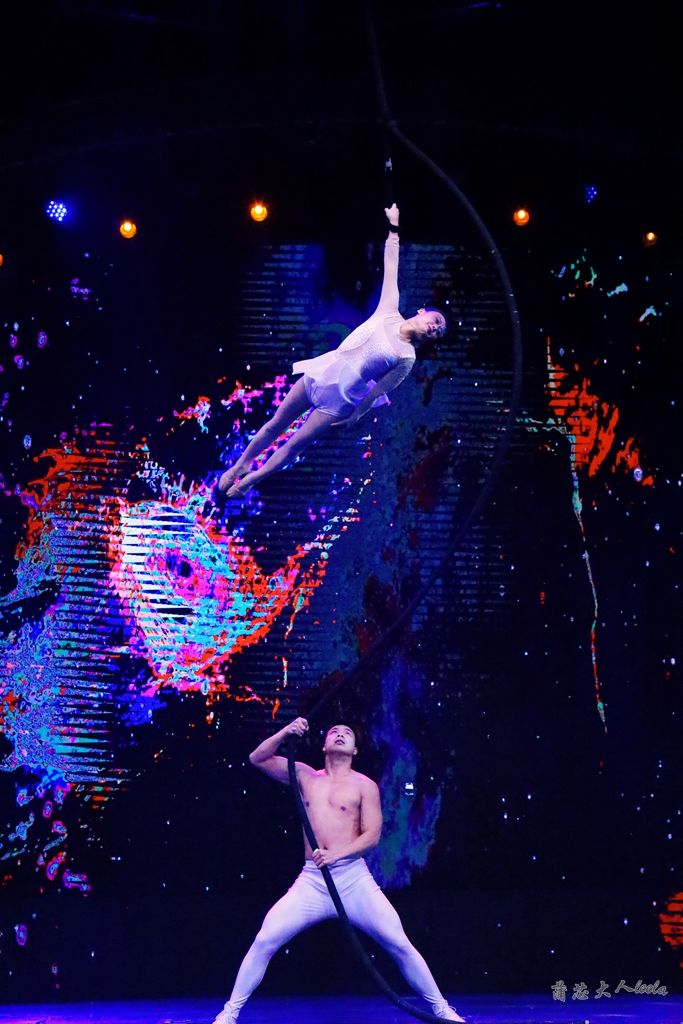 长鹿国际马戏团的“地球村.幻秀“很精彩,每天下午2点开始,错过要等明天才行。我们从尖叫乐园这边走过廊桥,来到在八角亭餐厅旁的长鹿地球村剧场,里面空间很大,可容纳1600人,能近距离观看精彩表演。