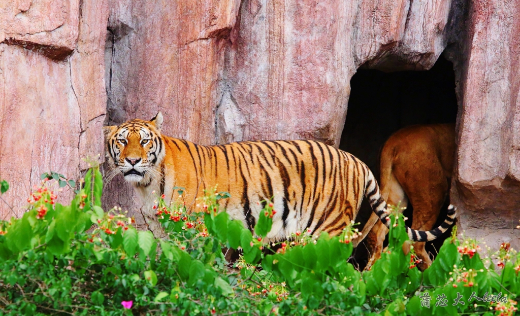 狮虎山在二楼,老虎狮子跟我们的距离好远,要花钱买肉投喂,它们才会出来捕食,这样才能拍到老虎狮子的特写。