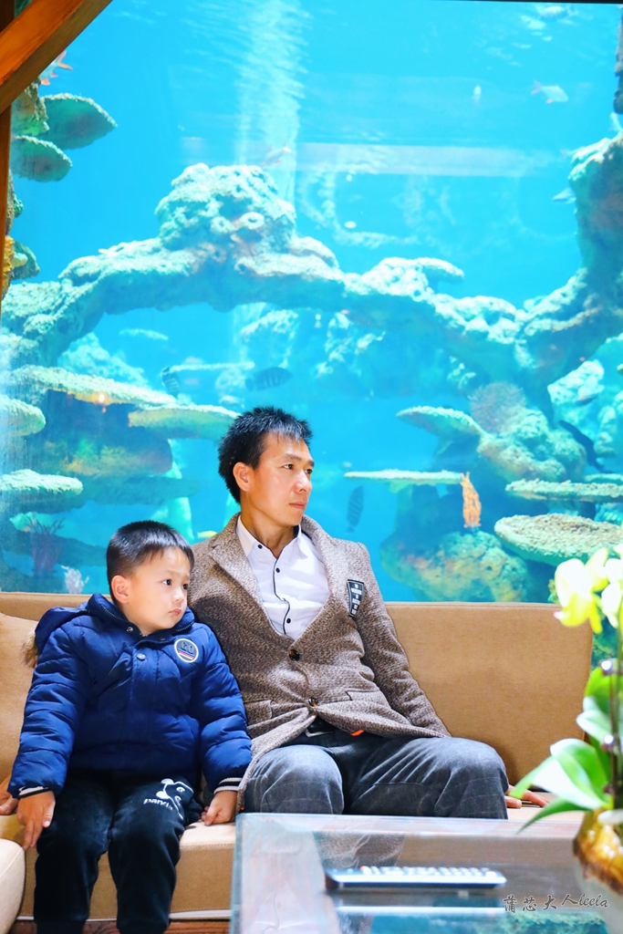 宝宝很喜欢海底酒店,他贴着玻璃看着游来游去的蝴蝶鱼、小丑鱼、海龟,还能见到魔鬼鱼和鲨鱼,开心得不得了,我赶紧拍下这美好的瞬间。