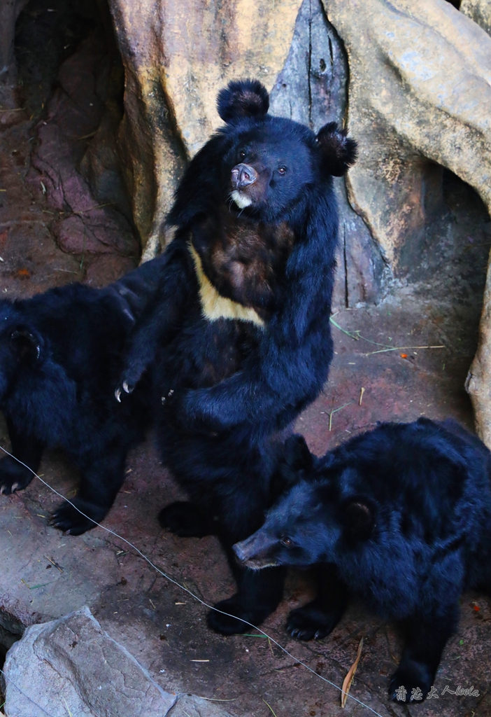 本来没看到黑熊的,是宝宝嚷嚷熊大熊二,我们才发现旁边有几只黑熊,它们有的独来独往,有的三五成群等游客投喂,听说夏天还有冰棍吃,真心羡慕啊!