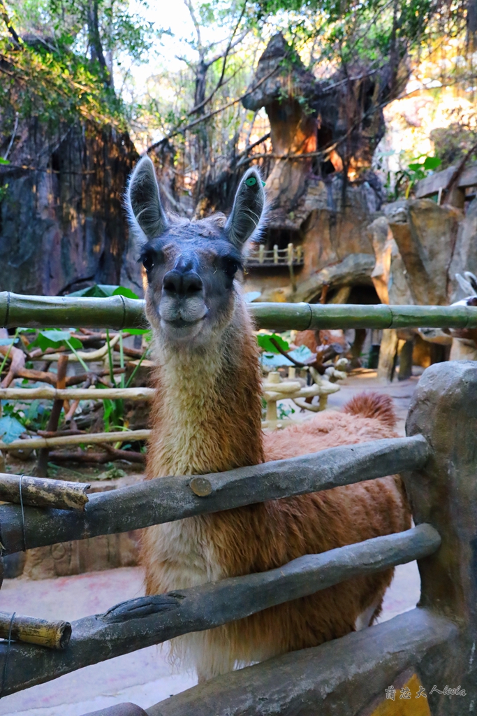 看到驼羊时,我默默地百度一下,原来驼羊和羊驼是不同的,驼羊体型大于羊驼两倍,耳朵有点弯曲,经过驯养后可以登山运输货物,而羊驼就是网络神兽之一的草^泥马,它的外形很萌,耳朵是竖直的。