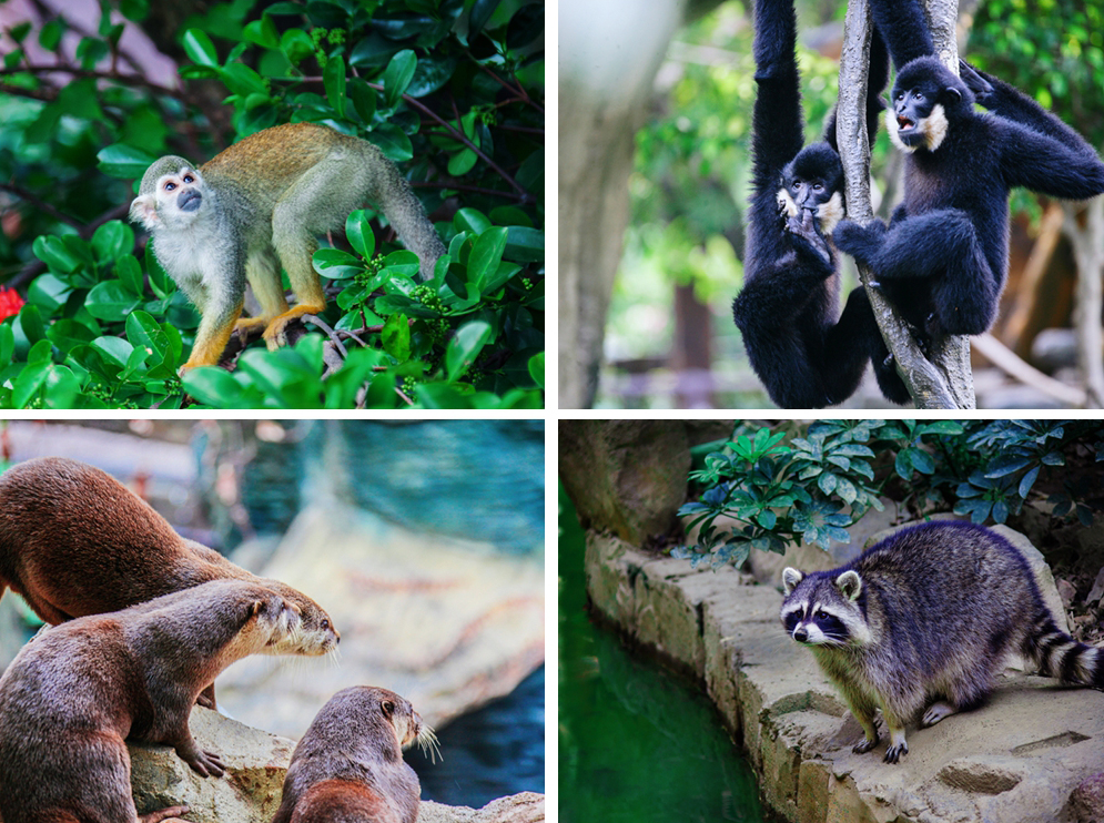 小动物区有水獭、小浣熊、狐獴、松鼠猴、小熊猫等,我们还看到娇小的龙猫,只见狐獴和小猴子在树丛跑来跑去,它们跑得太快了想拍照却未果。