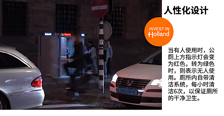 在荷兰阿姆斯特丹市中心的达姆广场中心,隐藏着一个地下公厕。平时不用时,就是一个样貌普通的井盖,丝毫不被行人察觉。夜晚降临,当人们需要它时,它便从地下冒出来,展现成公共厕所的模样。
