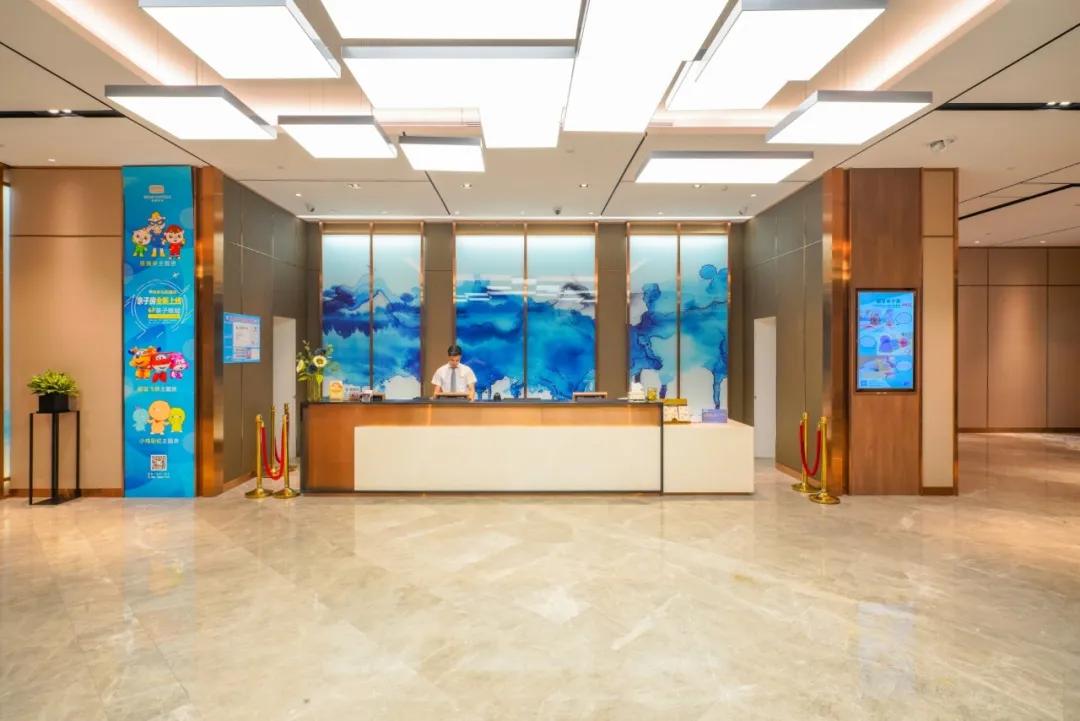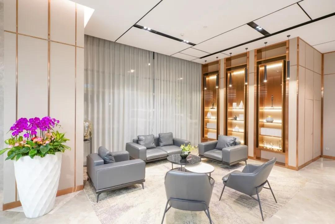 大堂室内设计风格延续了弘阳广场整体蕴含的长江元素,泼墨线条勾勒出灵动的长江水,象征弘阳奔腾不息的精神;而简约轻奢的设计理念,诠释了经典与时尚的完美融合,为客人提供轻松惬意的舒适空间。