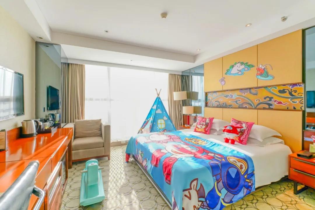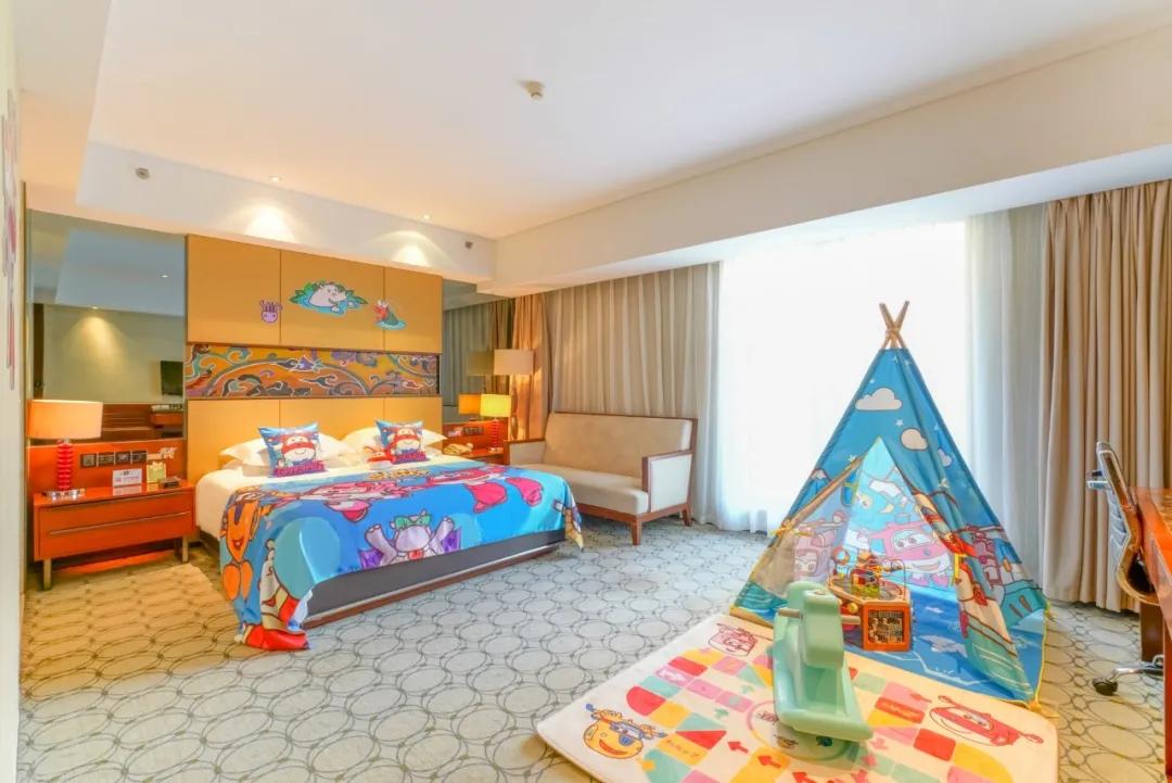 如果是亲子度假,那么美栈君推荐入住酒店的6楼亲子楼层,酒店将整层设置为亲子主题客房,分别有猪猪侠、小鸡彩虹、超级飞侠三种房型。