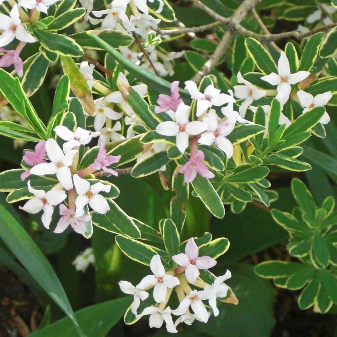 瑞香花有着不同的品种,其中叶子边缘呈金黄色的,就是最受欢迎的品种,它叫金边瑞香。
