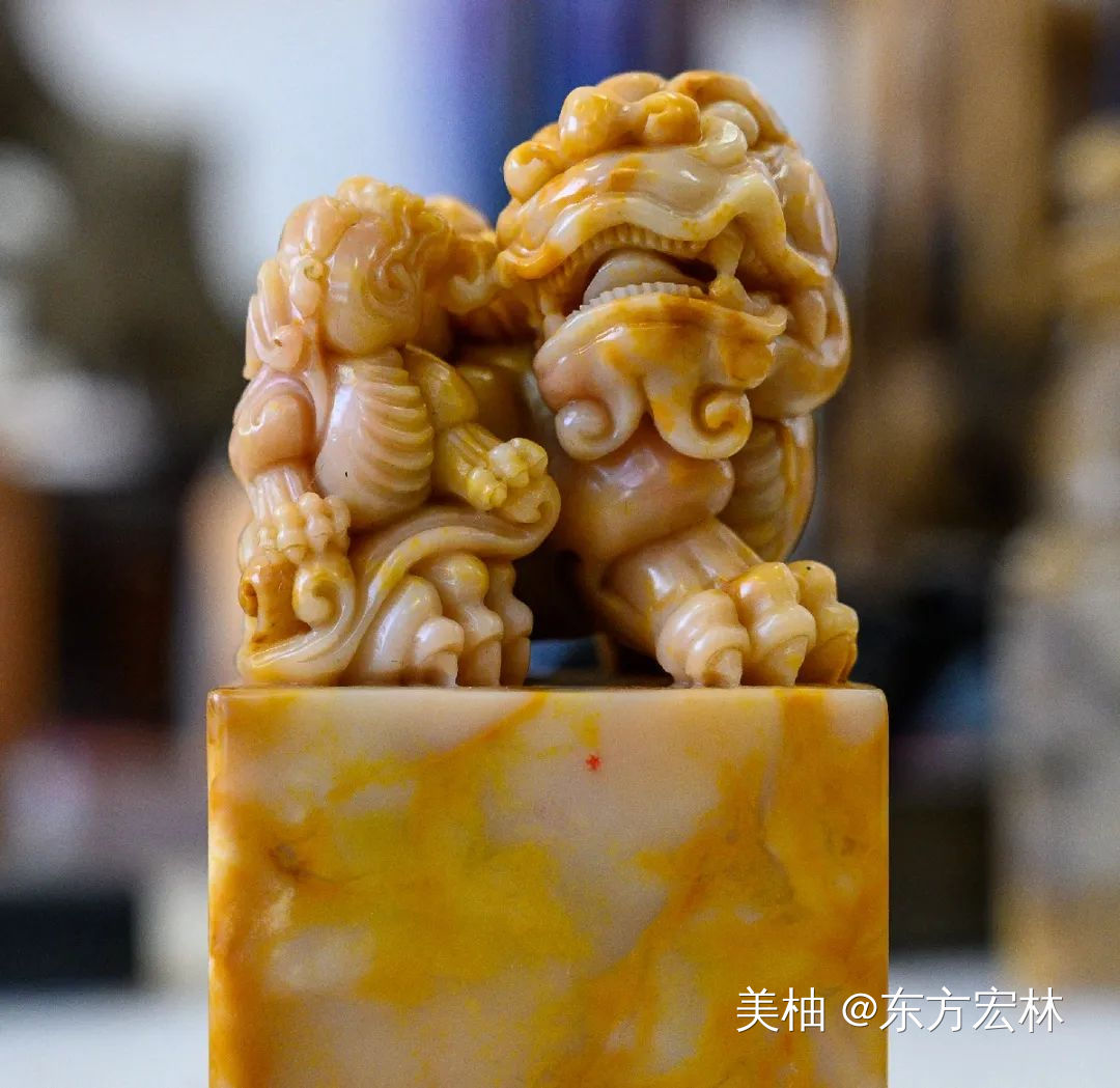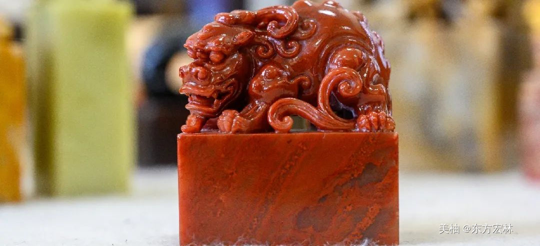 H:主要是就是四大篆刻石料,寿山石、青田石、昌化石、巴林石,它们各有特点,每种石头下边还分很多品种。因为很多石头品种资源有限,所以不光有艺术价值,也有收藏价值。比如鸡血石因为当年开采后不懂得合理利用,造成不必要的浪费,导致其后来价值昂贵。在这些石料中,寿山的田黄石、荔枝洞石、巴林鸡血石、粉洞、福黄石、昌化的鸡血石、青田的山炮绿、灯光冻石等石料已经难得一见了!都已经成为收藏家们的猎物了……