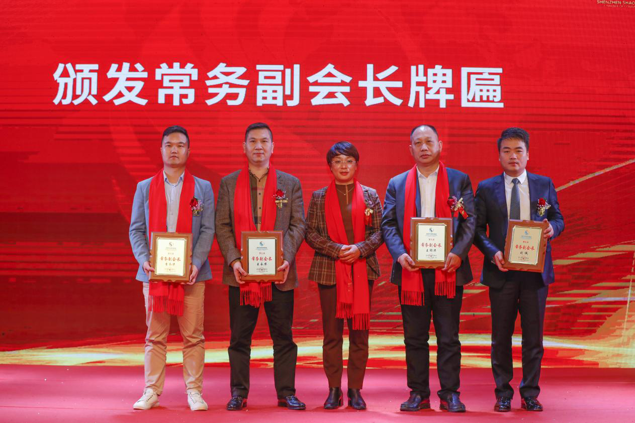 就职典礼现场举行了庄严而神圣的授牌仪式。其中,湖南省人民政府驻深圳办事处主任熊方平为金宇星颁发了会长牌匾;深圳市委原常委、深圳警备区原政委李建华为申征兵颁发了监事长牌匾。与此同时,名誉会长:王利民、敬阳红;荣誉会长:尹高斌、曾小莹、苏小红;常务副会长:刘诚、王邵华、王永华、李乔华;副会长:曾威宜、张伟强、乔茂林、陈亮、王佳旺、申有志、汪伟、黎阳、申小春、赵铁祥、李维国、李虞山、王锋锋、宁佐林、容国强;秘书长曾威霖;理事:刘安平、张敏强、李增国、李洋杰、申健武、唐展志、贺建勇、金武清、曾敏、赵体、李冬云、敬灵芝、容旺、陶劲峰、曾迪、禹利群、肖启能;监事:李超平、刘利良、王建民、刘美军以及龙岗工作站站长黎阳、罗湖站站长王锋锋、龙华工作站站长汪伟、前海工作站站长曾威宜、西部工作站站长张伟强的牌匾授予仪式,在相关领导的亲切关怀和支持下,圆满完成。