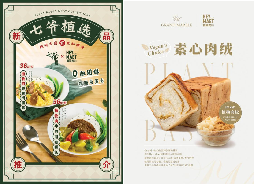 Hey Maet推出的植物牛肉类产品包括牛肉汉堡饼、牛肉丸;猪肉类产品包括肉泥、香肠、小酥肉以及猪肉松;鸡肉类产品包括鸡块、鸡柳等。目前,Hey Maet的产品已进入北京、上海、广州等一线城市的数家网红餐厅。Hey Maet不仅为B端餐饮客户提供以上产品,还为B端企业提供定制化服务,生产定制化植物肉产品。