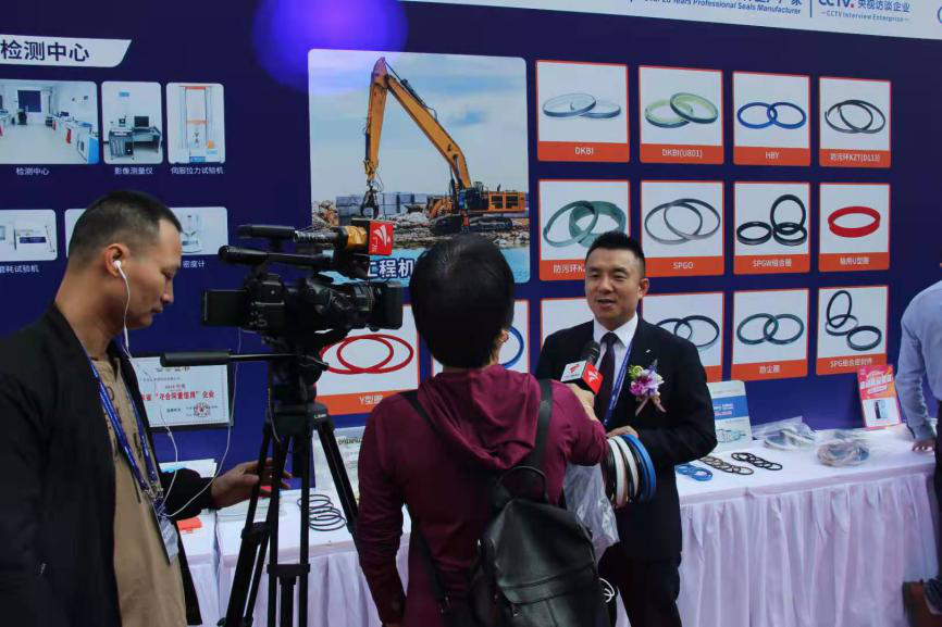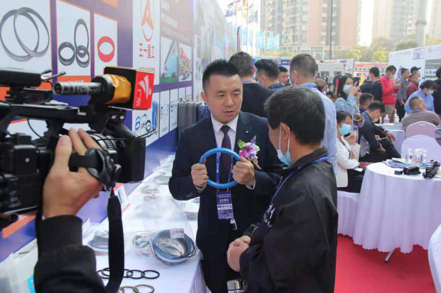 东晟密封总经理胡燕林先生接受采访说到:此次展会主要以行业网红助力工程机械疫情后市场探讨,因为今年的疫情,在很多行业非常低迷的情况下,工程机械高峰猛进。在2020年之际,此次网红大会将会给大家带来一个非常好的收官。针对此次网红节,东晟密封带来了一系列的工程机械行业产品,比如工程机械用到的 密封圈,挖机上用到的密封件散件,修理包,破碎锤等等,非常重要的是我们带来了三一重工的维修包,东晟密封目前在国内是三一重工维修包非常齐全的一家企业,我们生产的密封圈飞上了100万里的天空,潜下了1万多米的海底,能满足客户的使用要求,经得起客户的测试。
