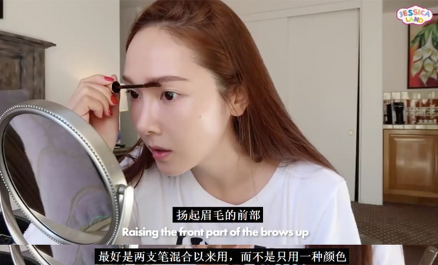 别看郑秀妍平时的妆面简单,但是细节处理一点都不少。眉毛用两个颜色的眉笔一起画,再刷上棕色的睫毛膏在眉头梳出毛绒感,这样眉毛看起来比较自然。