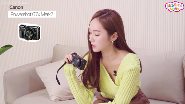 首先郑秀妍作为成熟的Vloger,相机和拍摄支架是必备的。机身背面的翻转屏可以支持上翻和下翻,在自拍的时候可以轻松的看到自己在镜头前的样子,专业!