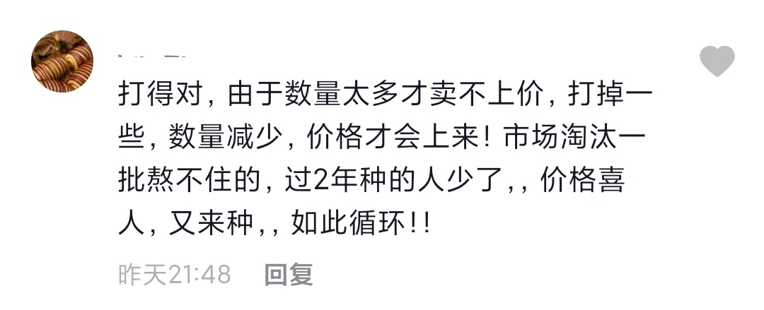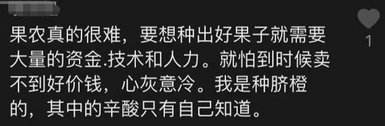 看到视频的网友也是发出各种议论,一位同样是果农的网友感同身受,感叹果子卖不出好价时会心灰意冷,辛酸自知。