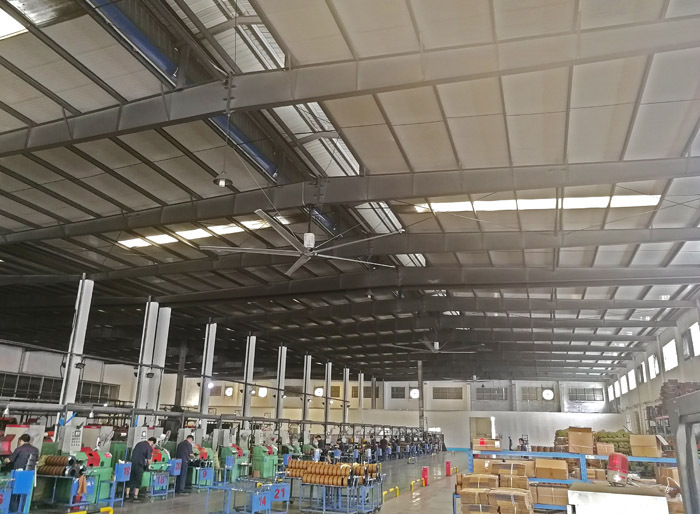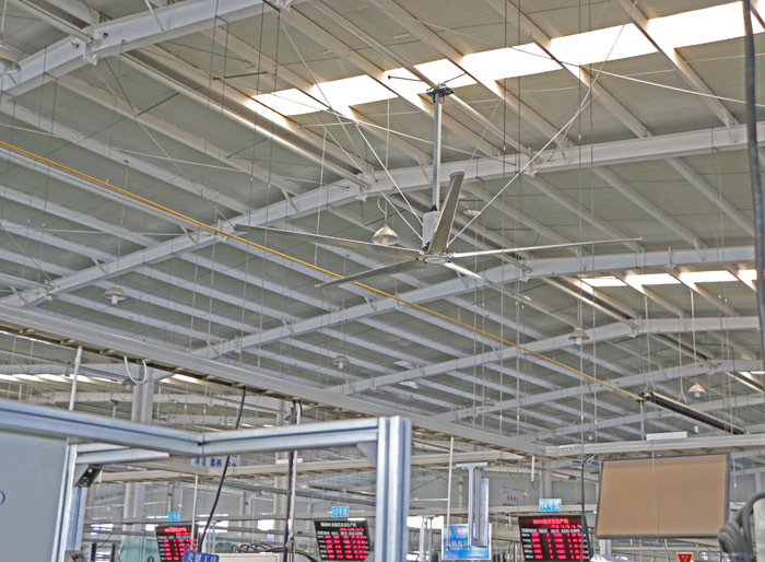 钢结构的厂房屋顶铁皮结构吸热强,在烈日炎炎高温的夏季,室内温度常高达40度以上,仿佛置身火炉。在人员密集的钢结构厂房,解决钢构厂房高温闷热,如何给室内空气环境降温是一个至关重要的问题。钢结构厂房整体面积比较大,保温效果差,空调无法达到想要的温度,而小型风扇吹出的热风更让人煎熬,严重影响了员工的舒适感,工业大风扇应运而生。强力环境通风,春秋凉爽,夏冬季舒适,一次投入,终身受益。