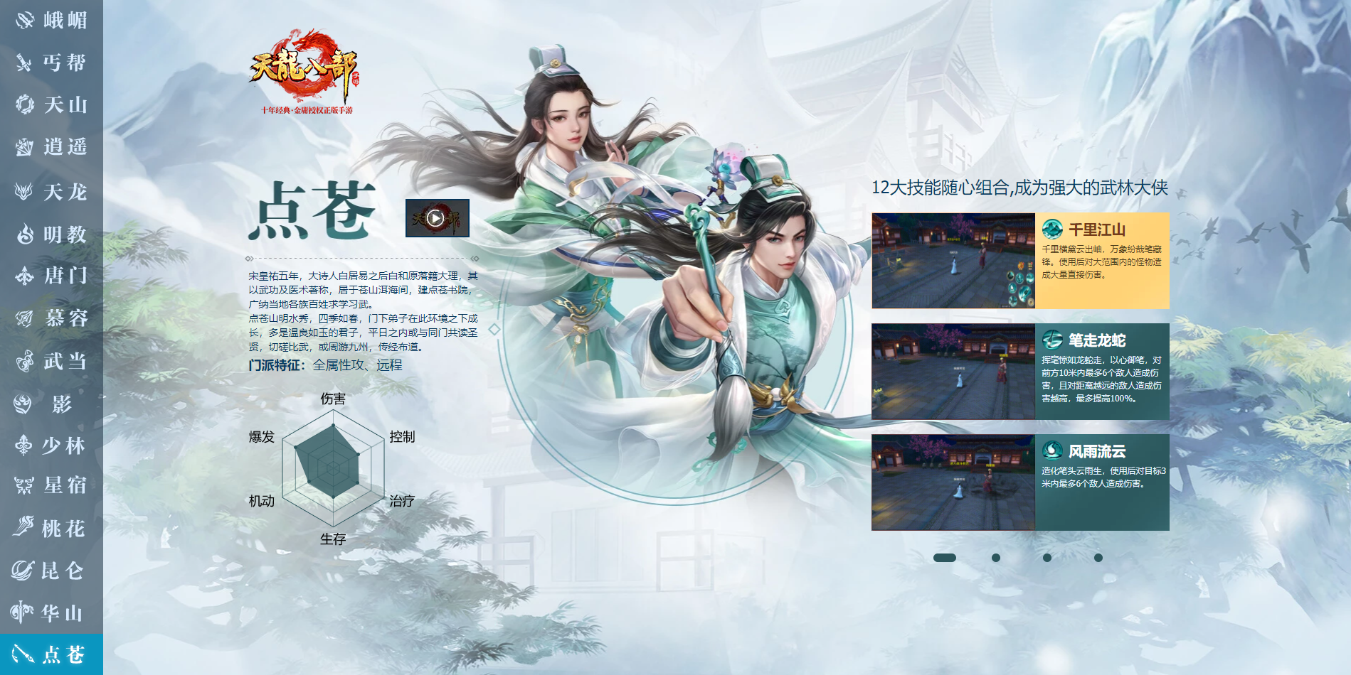 作为《天龙八部手游》当中的全新门派,点苍派其实在原著当中并没有过多的体现,与此相似的还有之前“重现武侠万里河山”第一站推出的华山派,再包括更早的武当派、桃花派等等非“天龙”元素。