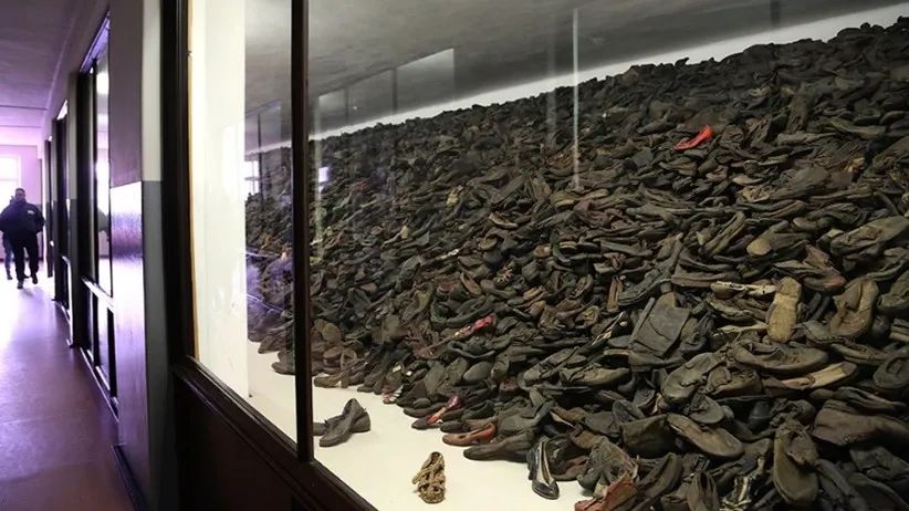 一个大屋子里堆放着遇难者的鞋子,男女老少的,各式各样,从地面差不多堆到了天花板;据说,几天就能形成如此触目惊心的阵势。