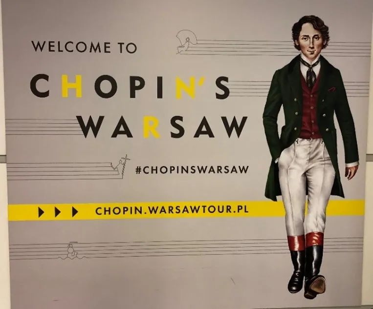 飞机在华沙降落了,机场的名字就奢侈地叫华沙萧邦机场!一走进大厅,一幅大型宣传画扑面而来:『欢迎来到萧邦的华沙!』风度翩翩的萧邦肖像与五线谱一起优雅地附和着欢迎词。