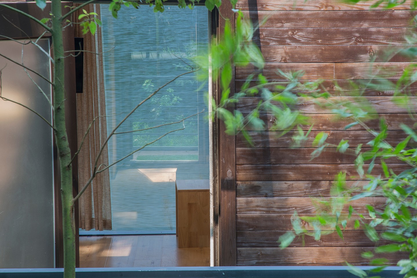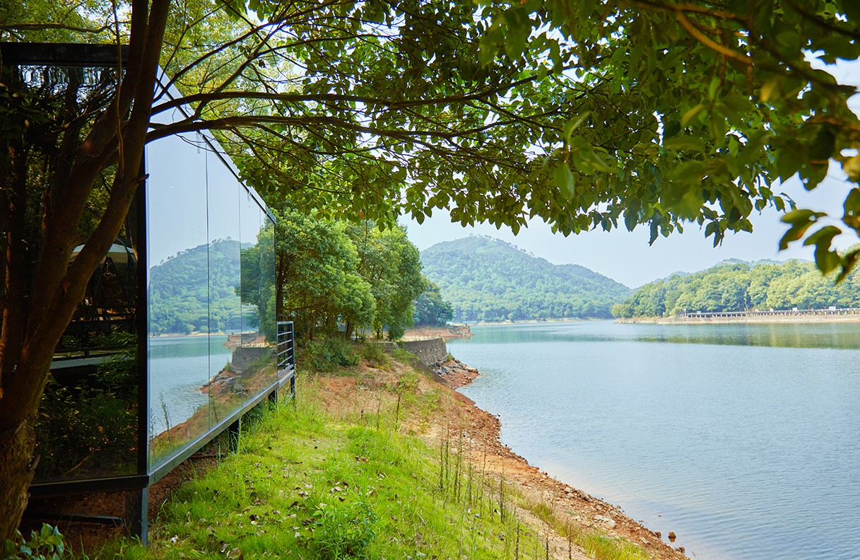 镜界房间内部布置简单,卧室、小客厅、卫生间等,可满足野外住宿的基本生活需要。卫生间做了干湿分离,可提升居住的整体舒适感。一出门就能感受到大自然的清逸和美感。