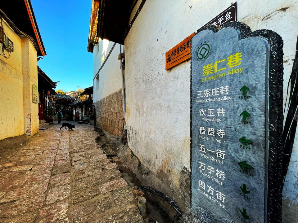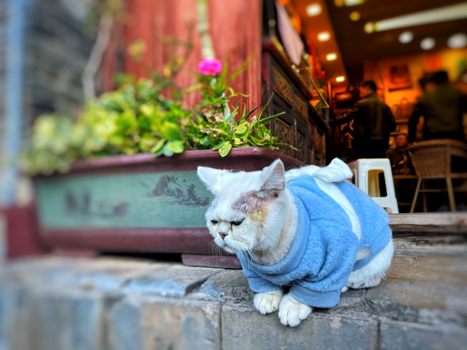 没有目的,不做打算,顺着凹凸不平的青石板随意四走,是我认为对不用追赶时间的旅行和这个古城最大的尊重,做个逍遥散人,说不定下一秒,转角就能遇见正趴在门前晒太阳的猫。俗话说猫有九条命,虽然只是茶余饭后的谈资,但古城果然不同,随便偶遇只猫,看上去就像个有故事的。
