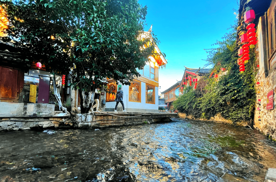丽江古城独特的空间布局和密集的桥梁因为水的活用让它更加活泼生动,尽管是在冬天,街上各处也不见北方城市中常见的萧瑟和严肃。智者乐山,仁者乐水,当地人说如果在古城迷了路,就去看水流方向——顺水进城,逆水出城,四通八达的水流是比时光还清晰柔软的引路人。