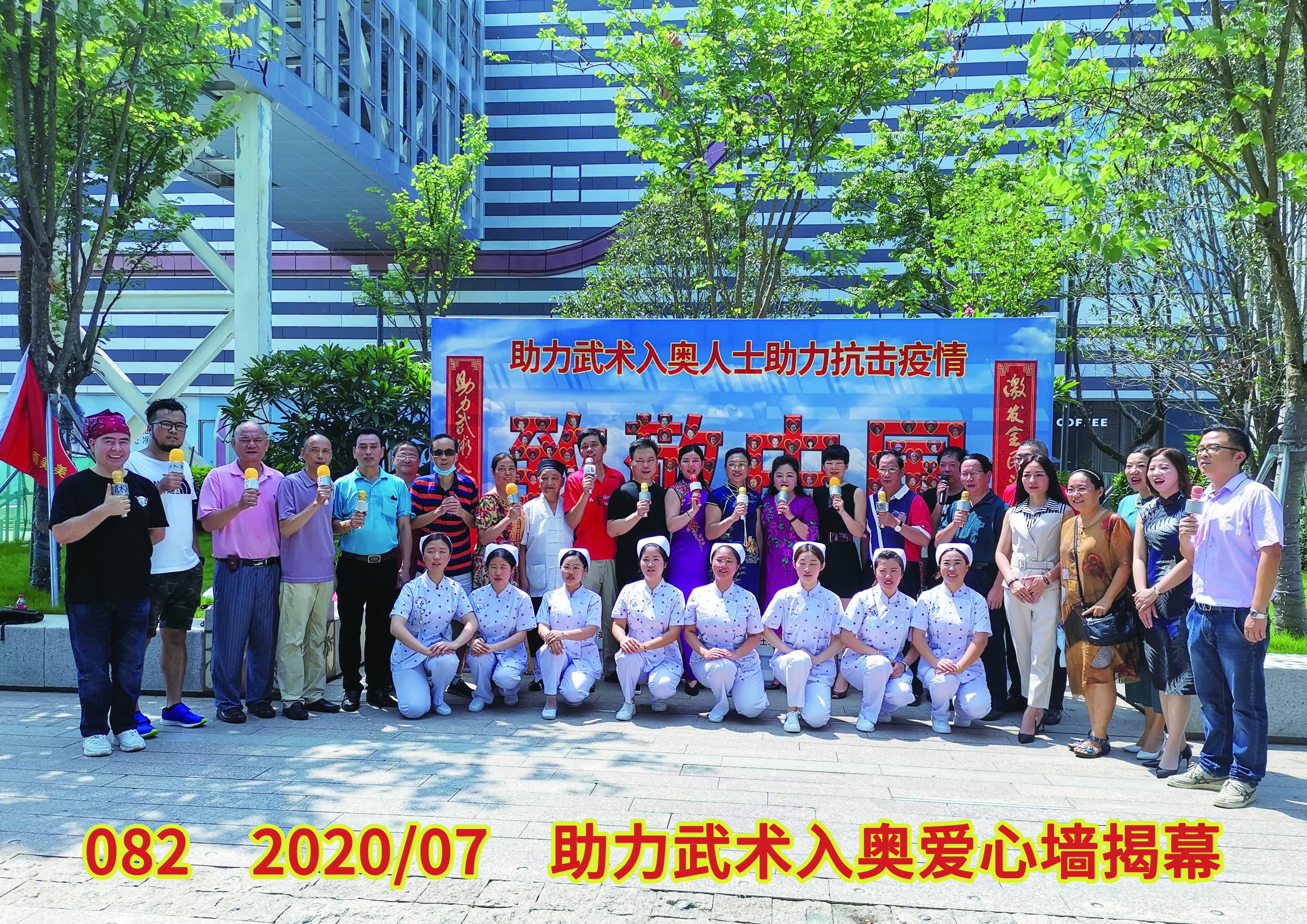 20、5月12日,多家医院的护士们在致敬护士节的同时,呼吁民众习武健身,增强抵御病毒的免疫力。助力抗击疫情勇士助力武术入奥。