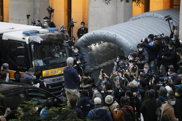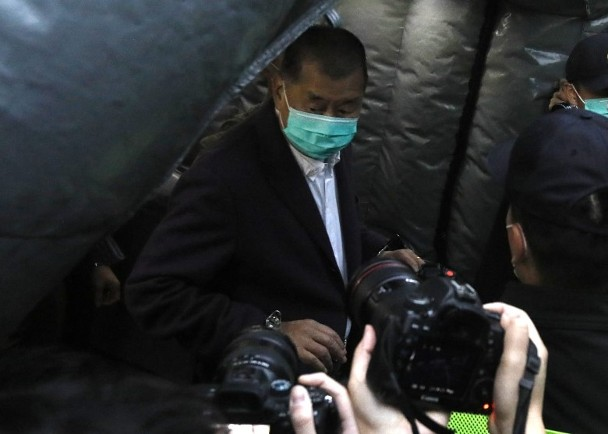 报道称,当终审法院法官宣布撤销黎智英的保释后,法庭内惩教人员随即上前将黎智英带入囚室,再安排囚犯车将黎智英押至荔枝角收押所。因在法庭外等候拍摄黎智英上囚车情况的媒体众多,惩教人员不得不在终审法院囚室出入口至囚车间展开充气通道通过。