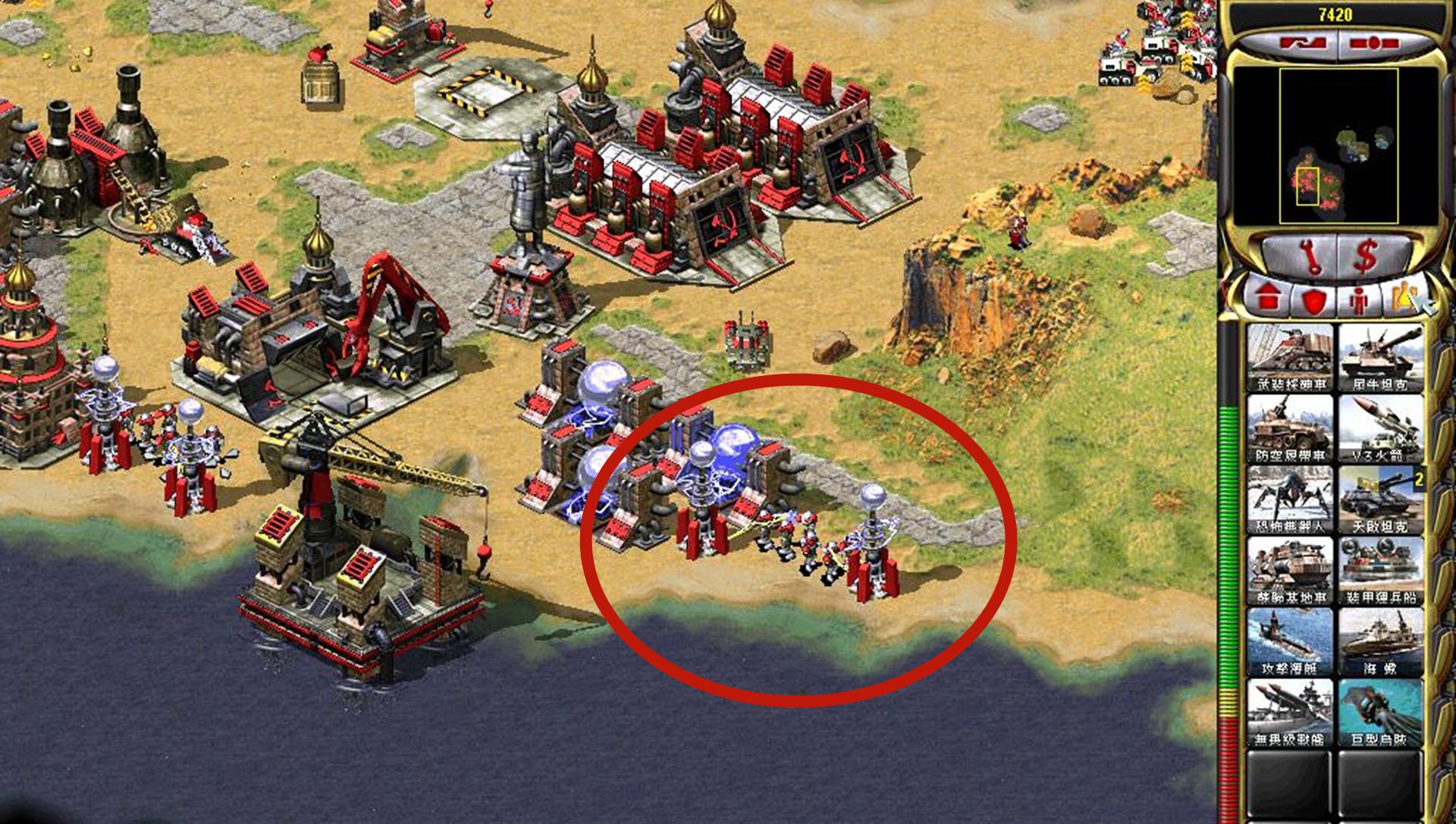 再者就是磁暴塔了,我们都知道,这家伙对标的,就是盟军的光棱塔,有着一定范围的防御力,但是,大家知道吗?在盟军单位里面,升三级的美国大兵却可以在远距离对它造成伤害,没错,因为三星的美国大兵射程达到了8,这刚好在磁暴塔的射程范围外,所以,大家知道了吗?