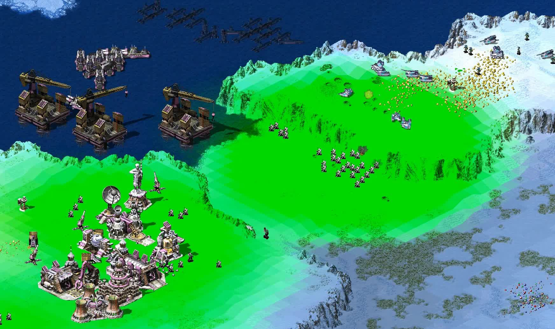 不过,尽管辐射工兵有这么大的能力,却有一个非常尴尬的地方,那就是不能防空,没错,由于防空的问题,使得对付辐射工兵最好的方法就是派遣空中单位去,这样的话,你根本挡不住,可有个办法,却能够反制,就是把辐射工兵部署到桥梁上,这样的话,是可以杀伤空中单位的。