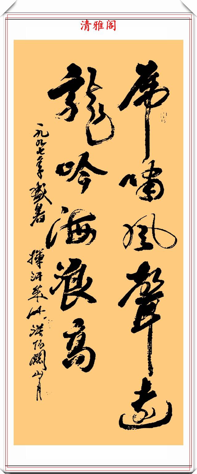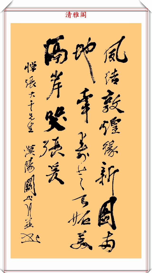 关山月的字和他的绘画相比就是小巫见大巫,绘画才是他的拿手戏,他很多的作品都被博物馆收藏。著名的是人民大会堂的《江山多娇图》就是出自关山月之手。他的画给人一种激情澎湃,大笔如椽的感觉。没有过硬的功夫,没有生活,没有高尚的追求,靠别出心裁、无病呻吟的人,画不出这样的作品!书为心画,画为心声。97年老先生的故乡大榨榕树,有画魂新生不老不朽的永恒之美。天堂在丹青等笔墨中,再现此类经典传统。