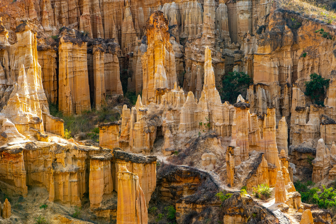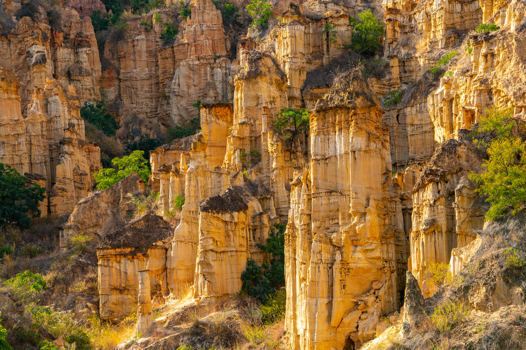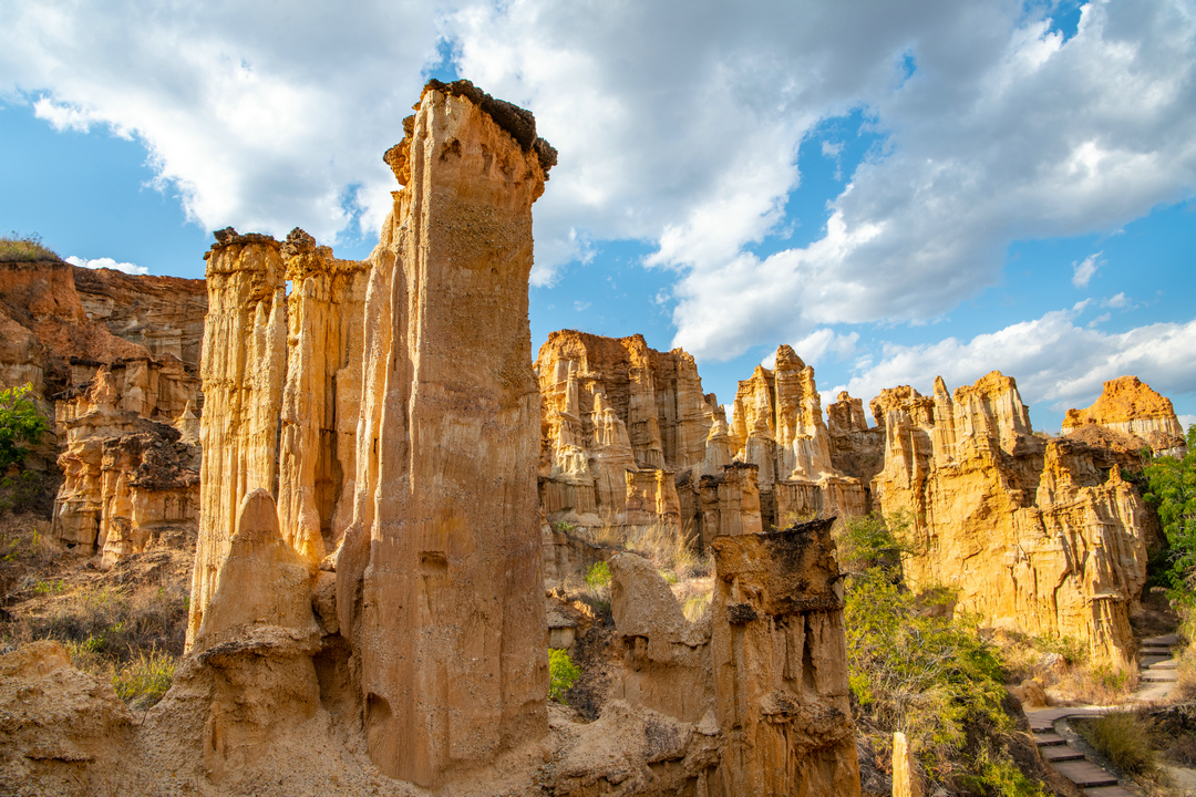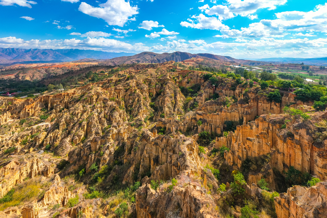 云南省楚雄彝族自治州元谋县境内有13座土林,总面积达42.9平方公里。其中面积最广、发育最典型、最为壮观的是物茂土林、浪巴铺土林、班果土林,土林景观各具特色,共同构造出一个巨大的惊世奇观。