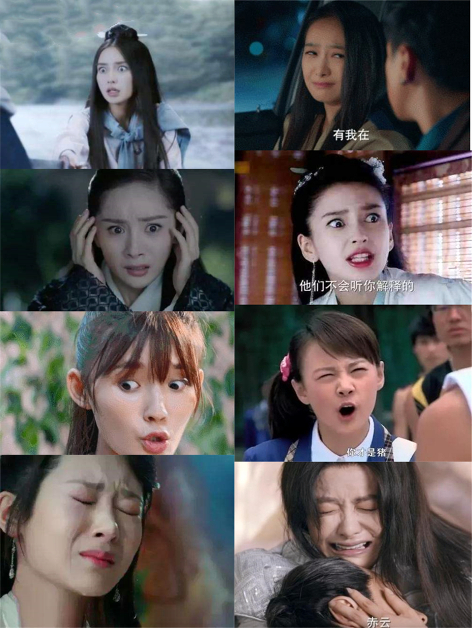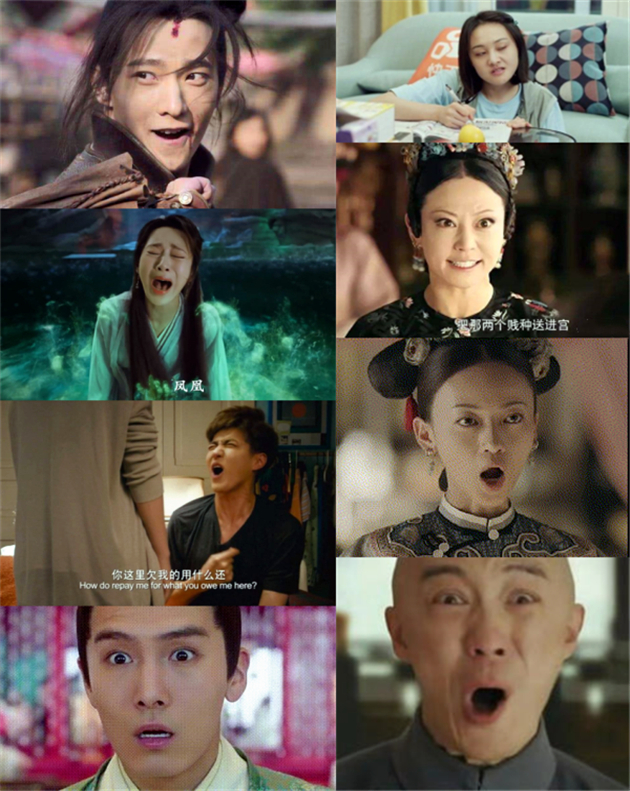而浮夸演技派呢,和面瘫演技派恰恰相反,他们没有呆若木鸡,他们是五官乱飞、表情过大、演技浮夸。很多演员在表演上都存在这个问题,他们演得非常外放,靠着撅嘴、瞪眼、挤眉弄眼、甚至又哭又叫来表现人物的情绪变化。但这样的表演,演的都是表面的东西。这样演被人骂演技差就算了,最惨的是,他们在剧中的表演还被人截图制作表情包。