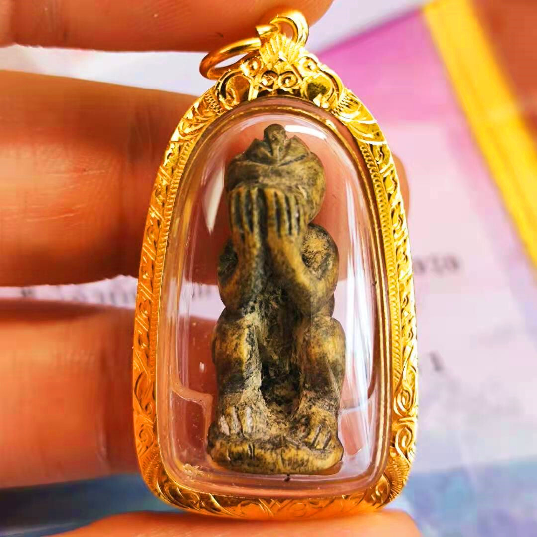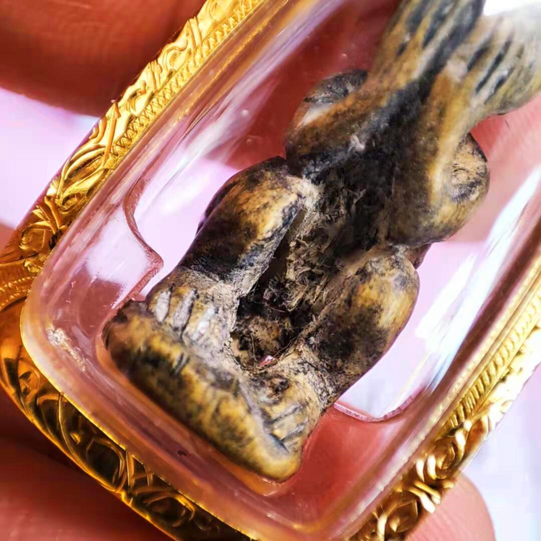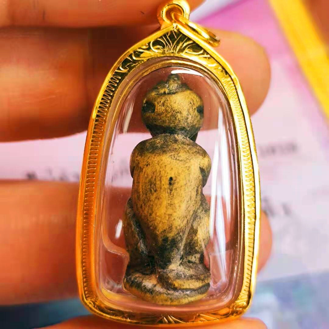 风雨江湖·毅力半个世纪而不倒!罗勇府瓦拉罕莱·龙婆tim,本尊便是出庙于泰佛历2518年龙婆tim师傅亲手雕刻。哈奴曼灵猴法身,可令善信从容面对人生困惑,战胜一切险阻困难,阻挡所有伤害,更是坚韧不拔,绝不妥协,永不退步,顽强奋进,直至取得最后胜利的代表圣物!这种精神意志无论是在我们逆境还是坦途时都能鼓舞我们一鼓作气勇攀高峰!。必打佛法相,最早之初为善迦财佛法身,最为后期演变法相,其承载的意义可将对佩戴者不利的事、物阻挡在体外,使之不能进入身体影响人们的心灵,更是泰国人民心中对无尽财富的映照。佛牌本身沿用神木材质督造。选用寺庙栀子树木自然枯萎,放置大殿静置三年经过三个守夏节后,选起力量积攒结点,雕刻督造而成。taifulaifopai。 这也是龙婆tim师傅在生命最后节点,留给世间善信最为珍贵的礼物。