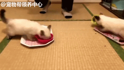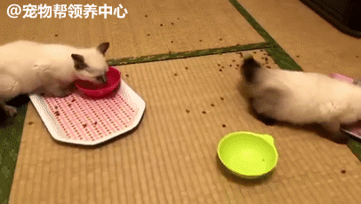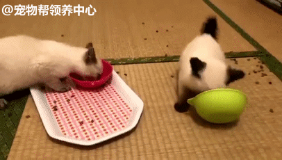 还没开始喂饭,就已经能感受到两只小暹罗急切的心情。