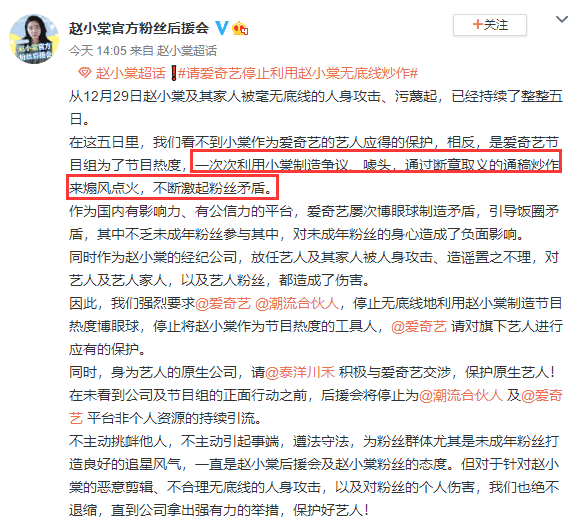 按照赵小棠的说法,“如果我恋爱一定是转型成演员,在团里的这一年半时间不会谈恋爱”,由此也看出公司和她自己对于职业生涯是有过规划的。