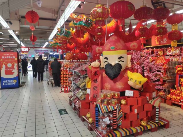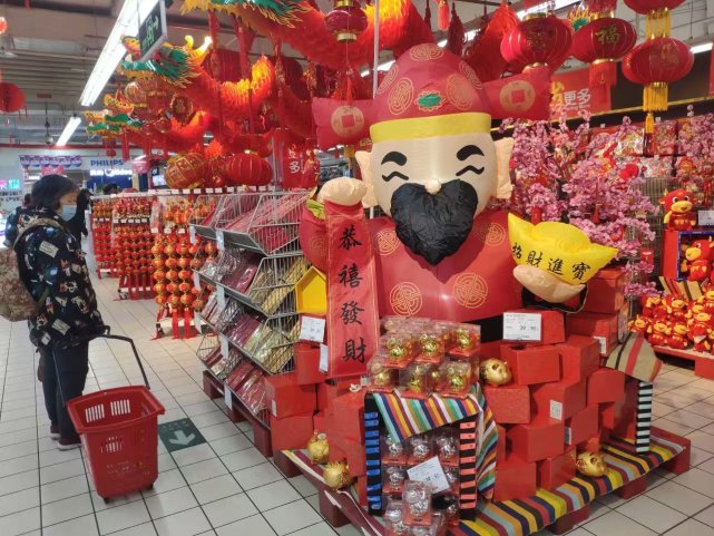 西南资讯(记者 樊富贵 摄影记者 范永根) 2021年1月1日,虽距离除夕还有一个多月的时间,但走在大街小巷上充满了节日的氛围。在重庆市九龙坡区杨家坪步行街一家超市的门口,这两天很是热闹,一进超市门口不远处就可以看到一个3米高的“充气型财神爷”守在超市的入口处,助阵新年元旦牛年饰品节。