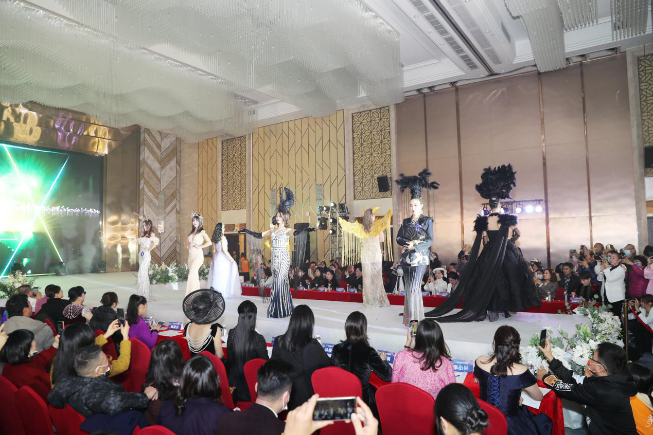 时尚晚礼服展示环节,选手们身穿晚礼服、缓步而来,在灯光的映衬下,更显得高贵美丽、摇曳生姿。
