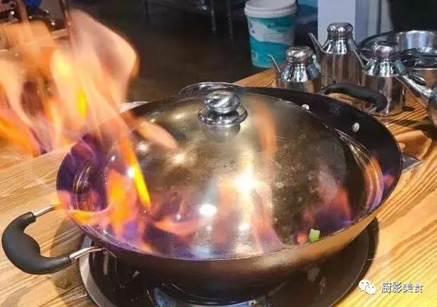 这时盖上锅盖,在锅沿边点燃,大火就轰然而起,在锅盖的四周燃烧,火苗足以将锅盖包围,随之酒气四溢,空气中弥漫着令人垂涎的香味。飞舞的火焰让现场烹制增添了丰富的视觉体验,场面颇为壮观。整个过程持续大约3分钟,待火焰渐熄,锅中酒灼烧殆尽,揭开锅盖,不断翻炒,经一段时间后,再加上其它调味品,此时酒香已与鹅肉混为一体,再焖制数分钟,当酒气蒸发完毕,一道酒醇肉香的顺德火焰醉鹅就烹制出台。