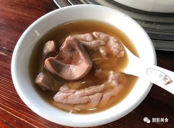 猪腰去除背面白筋,正面横向起花放入冰水浸泡,让他更爽口;由数十种药材熬制而成的汤底,分别放入猪腰等材料一同熬煮;再加入点睛的糯米酒和姜汁驱寒避腥,熬煮过程精准把握火候,熬煮5~10分,材料煮至8成熟捞起,到食用时,食材便可10成熟,保证了猪腰等材料的嫩滑。猪腰有肝一般的嚼劲,鸡子在口中“砰”的爆开,非常柔软的口感,类似于豆腐,感觉满嘴的蛋白质和脂肪……