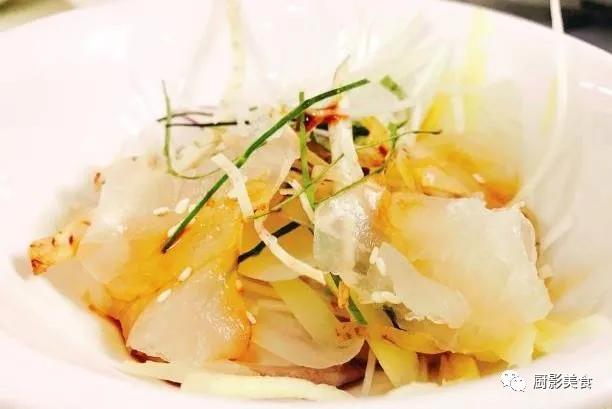 鱼生最讲“品相”,鱼肉必须要透明晶莹才算靓,因此在做鱼生时非常讲究放血,也最是“技术含量”所在。把握不好,鱼肉带红或水分过多,都会大大影响口感与卖相。放血之后就是切鱼片,鱼生好不好吃,全看师傅的刀工。免费加入厨影美食超级吃货群(加微信 xiaotudou2002 申请入群)。把鱼背的肉起出后切片,强调的是一个“薄”,「薄则鱼骨隐,厚则鱼骨现」。一个好的师傅,能把鱼片切成仅0.5毫米左右的厚度,薄如蝉翼,晶莹剔透,漂亮至极。一般鱼生在片好之后,要再放进冰箱冷冻一阵,如此才能爽滑清甜。