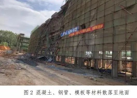 1、违规直接利用外脚手架作为模板支撑体系 ,且该支撑体系未增设加固立杆 ,也没有与已经完成施工的建筑结构形成有效的拉结;