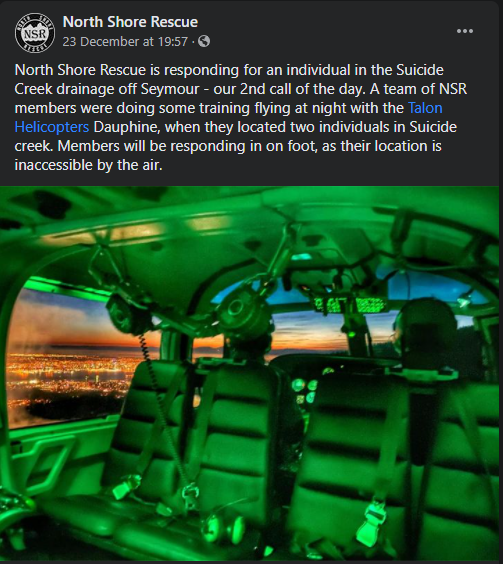 更难能可贵的是他们都是志愿者,没有薪酬,而作为非盈利组织,他们的运营成本都是来自社会各界的捐助。很多朋友关心救援费用的问题,无论是直升机,还是救援队,包括提供给我们的食品饮水,都是没有费用的,所以我也再次立文为证,我每年都会捐赠北岸救援队及其他BC省救援组织,以报答救命之恩。
