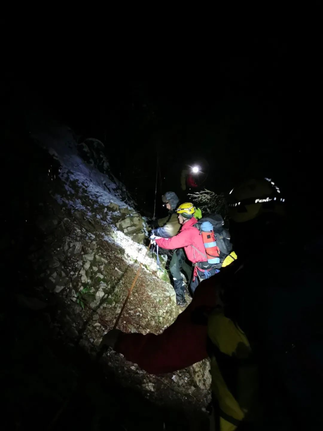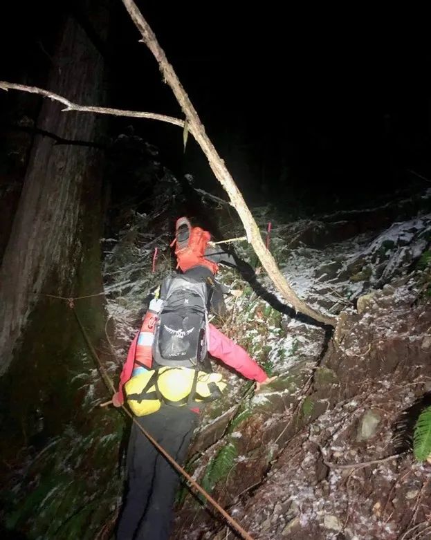 虽然一次次达到体能极限,但人在逆境中的潜力真的无法想象,我们抖擞精神继续最后的一段下降路线。虽然路途依旧艰险,气候依旧恶劣,不过有救援队的安慰和关怀,除了安全的保障,那种心理上的支持,恐惧早已消失在黑夜中。