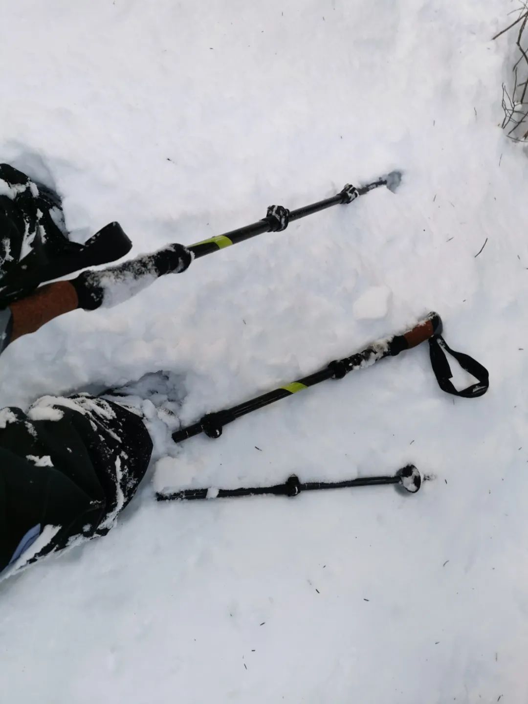 我的登山杖此时也折断了,这对我来说是不太好的预兆,上次五台山涉险也是折了登山杖。求生的欲望夹杂着恐惧的绝望,让我们一刻不敢停步,不管碎石还是冰块,不管巨木还是荆棘,我们必须坚持再坚持。