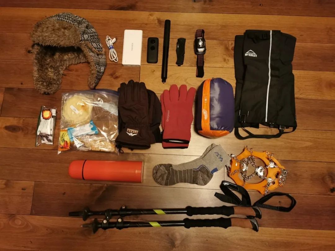 不管是不是Daily Hiking,装备必须齐全,颜色鲜艳的外衣,刀具,引火物,登山杖,手机,备用电池和充电宝,头灯,备用干燥衣物,夏天带防虫剂防晒霜,冬天带冰爪冰镐,这是五。