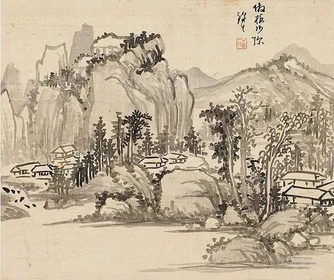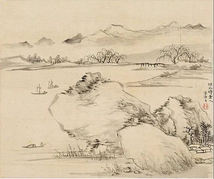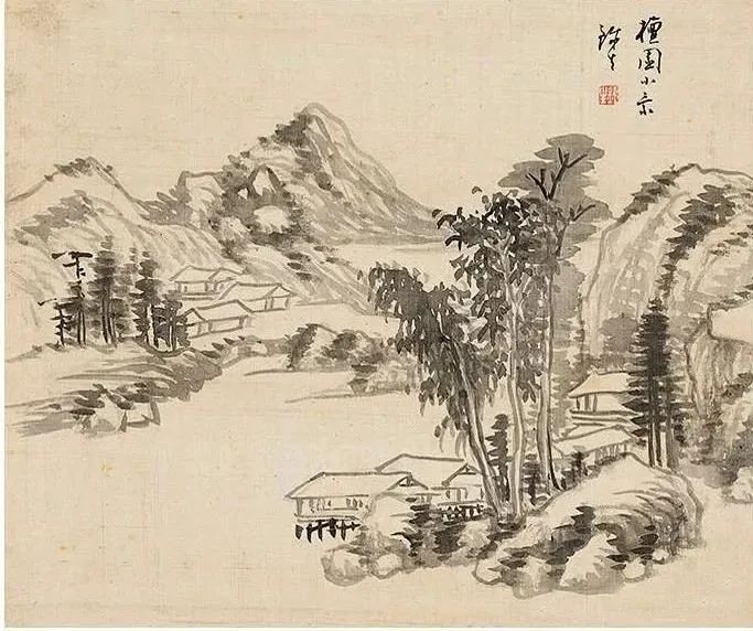 其《山水廿四帧册》为水墨绢本,尺寸23.5×28 cm,作于1787年。