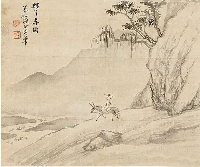 (二)驴背寻诗。摹松圆诗老笔。