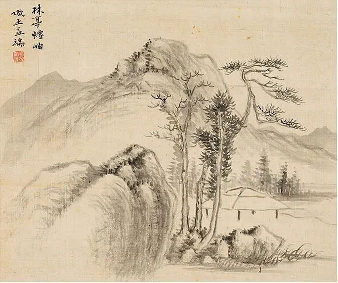 (四)林亭烟岫。仿王孟端。