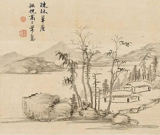 (十三)疏林草屋。橅倪高士笔意。