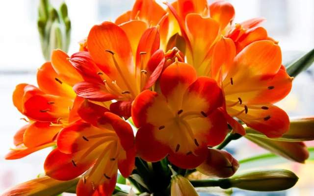 君子兰又名大花君子兰,花鲜叶翠,果实累累,叶、花、果兼美。叶态优美,高洁端庄;开花时叶绿、花红相映,仪态雍容。尤其是开花时正值新春佳节,深受人们的喜爱,成为布置大厅、会场或装饰居室的佳品。