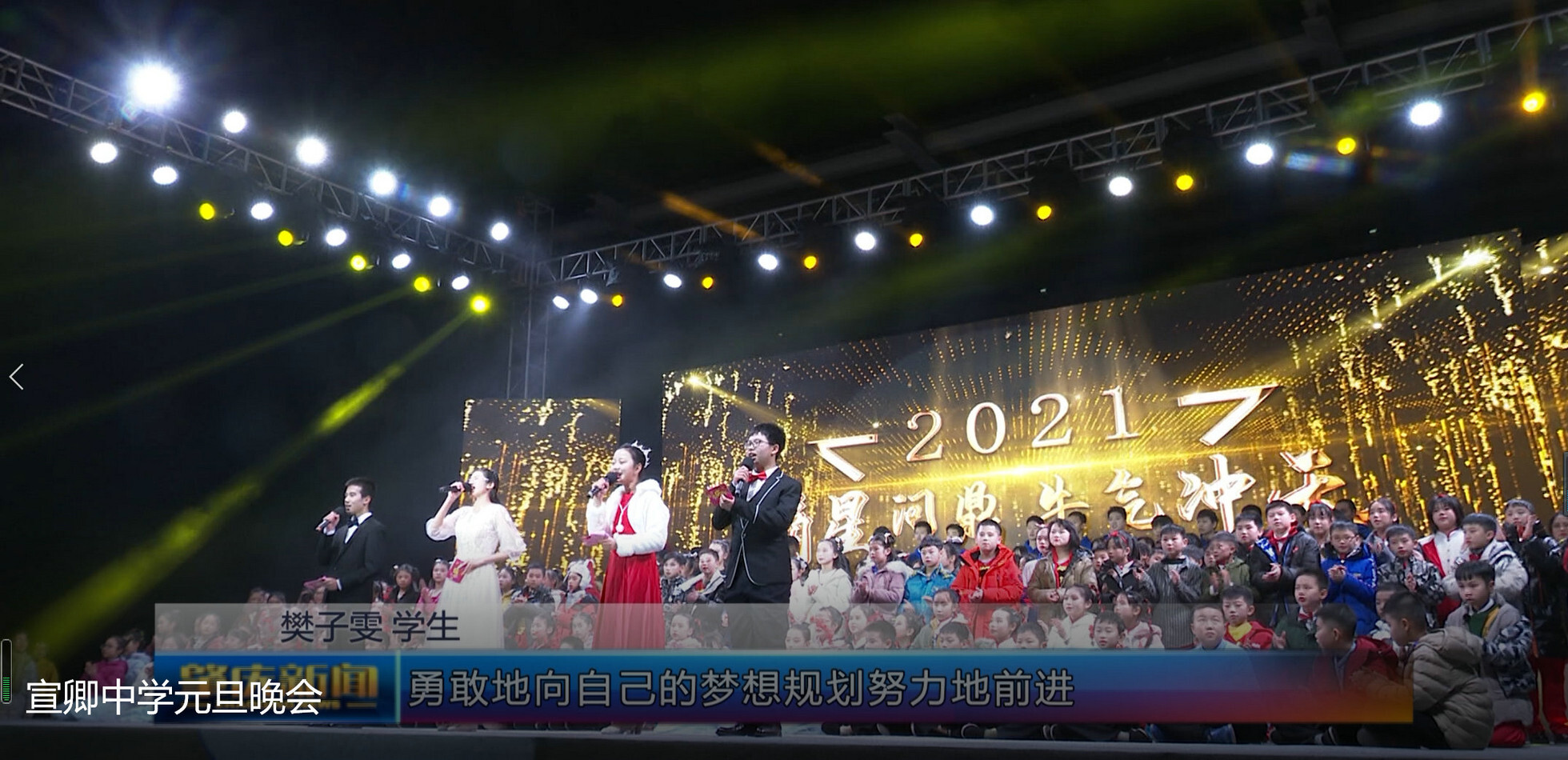 宣卿中学元旦晚会选拔师生优秀编排节目组成,精彩不断,高潮迭起。樊子雯同学不负众望,不仅担任起元旦晚会主持人,更是将其创作的歌曲《让时光慢些吧》在发布会环节演绎得感人至深,让现场观众个个都为子雯喝彩。在发布会现场,中国童星之父、词作家聂智民导师亲自给子雯作品做现场发布,宣卿中学彭校长、李书记、李校长也上台发表感言,对樊子雯同学给予了高度评价和期许厚望。彭校长甚至幽默表示“樊子雯这个孩子,不仅艺术上多才多艺,而且学习上也数一数二,真是太“可怕”了!
